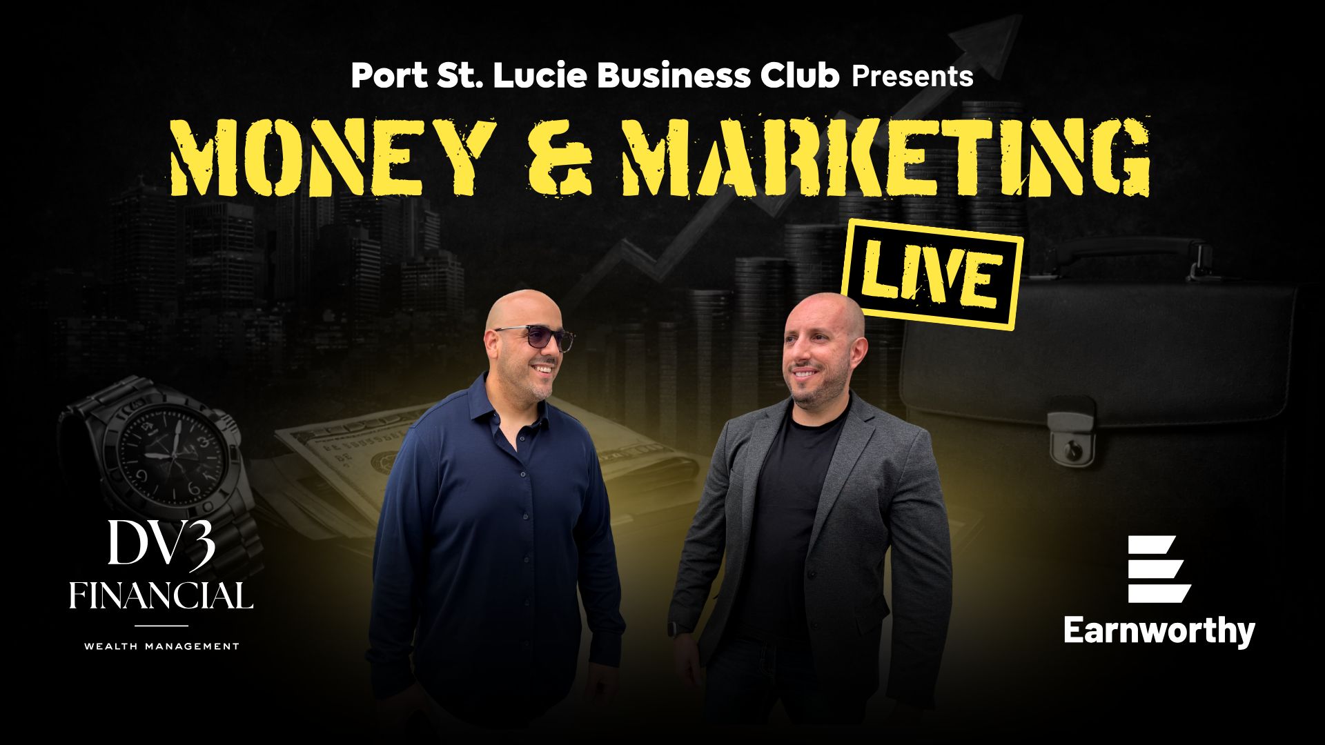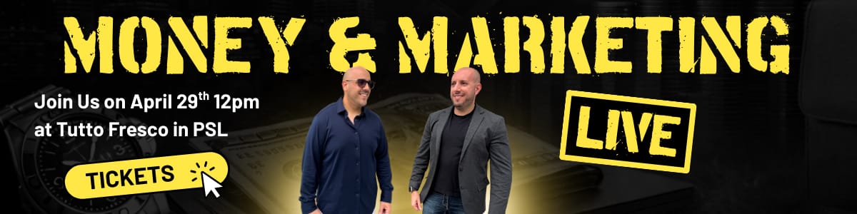 Money & Marketing Live is a private workshop for Treasure Coast business owners. Danny Velazquez covers the money side. Nicholas Scalice covers the marketing side. You leave with a plan for both.